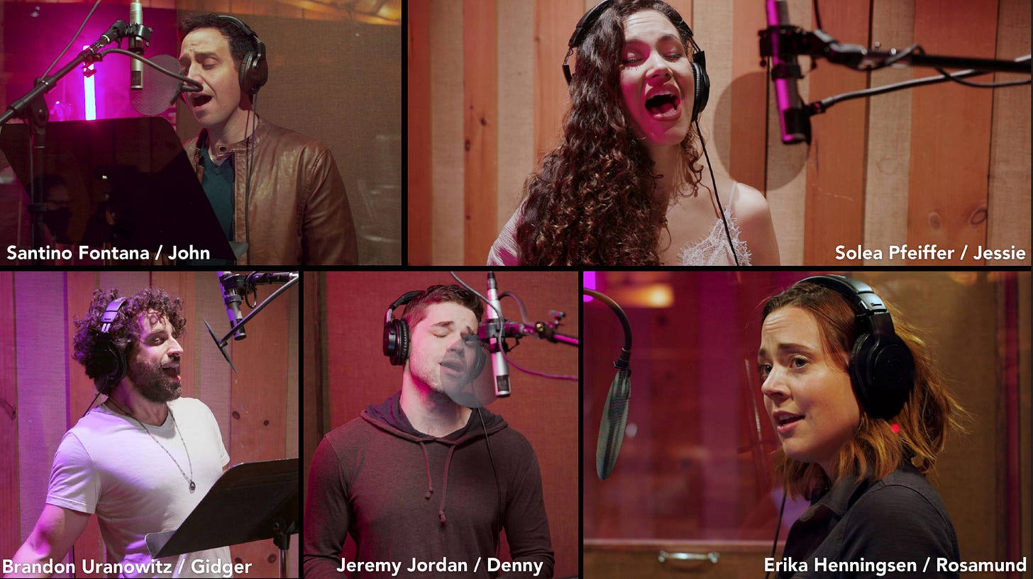The cast, by the way, is second to none. It’s Santino Fontana and Jeremy Jordan, Brandon Uranowitz, Solea Pfeiffer, and Erika Henningsen. The orchestration is by Charlie Rosen, who won his third Grammy Award last night, having already won two Tony Awards in addition. He has outdone himself with the rich orchestral recording that we were able to put together. Our brilliant music supervisor was Andy Einhorn, one of my oldest friends in the world.