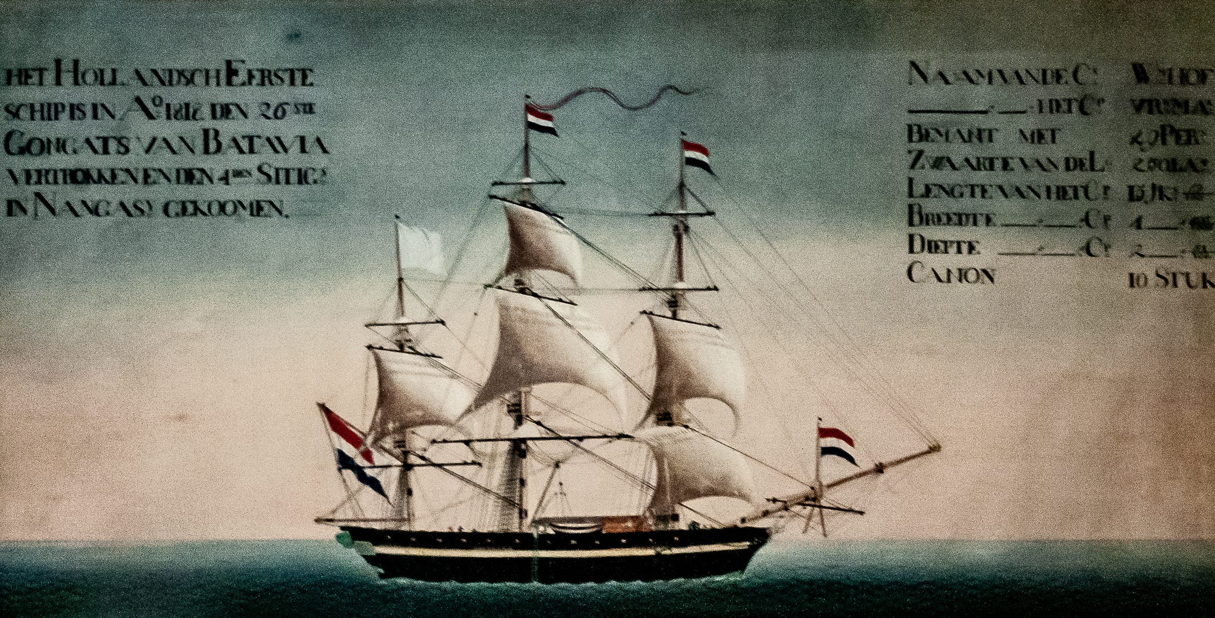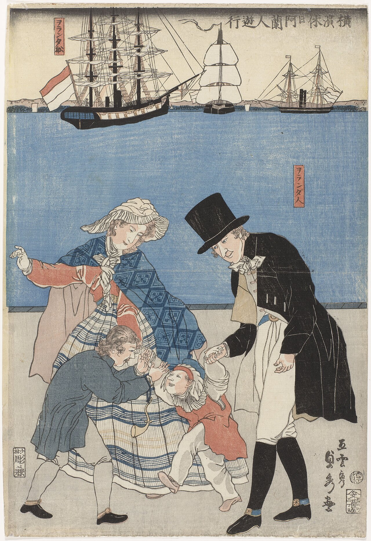 This was the Dutch East India Company — the VOC (Vereenigde Oostindische Compagnie) — which at its peak was the largest commercial enterprise the world had ever seen, with its own army, its own currency, its own capacity to wage war and sign treaties. By the time of “Please Hello,” the VOC had been dissolved for half a century, collapsed under debt and corruption. The Dutch state had inherited the Dejima concession, and with it the habit of profitable subordination — of accepting whatever restrictions Japan imposed in exchange for the right to keep trading.